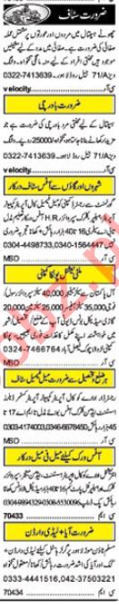 Computer Operator, Call Operator, Customer Relationship Officer CRO, Assistant Manager, Branch Manager, Receptionist, HR Officer, Supervisor, Assistant Supervisor, Account Manager, Office Assistant, LTV Driver, Cook, Watchman, Security Guard, Kitchen Helper, Husband Wife, Maid, Patient Care and Office Boy needs in well progressive companies.