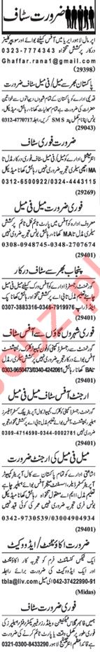 Manager, Admin Manager, Accountant, Business Development Coordinator, Business Development Executives, Civil Supervisor, Architect, Technicians, Expert Academic Writers, Female Office Assistant, QC Analyst, QA Analyst, Promotion Officer, Assistant Supervisor, Outdoor Delivery Staff, Security Guards and LTV Drivers needs in well reputed companies.