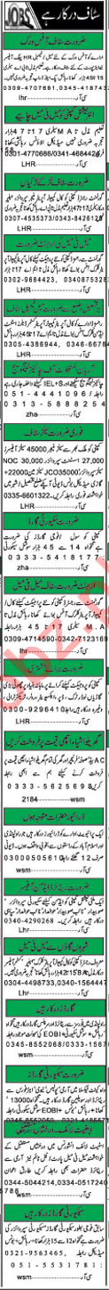 A well known companies located in Islamabad seeks candidates for the posts of Computer Operator, Call Operator, Assistant Manager, Branch Manager, Receptionist, HR Officer, Supervisor, Assistant Supervisor, Account Manager, Office Assistant, Receptionist, Clerk, Naib Qasid, Watchman, Sanitary Worker and Security Guards.