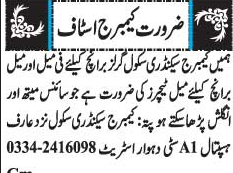 Latest Cambridge Secondary School Teaching Posts Quetta 2025
