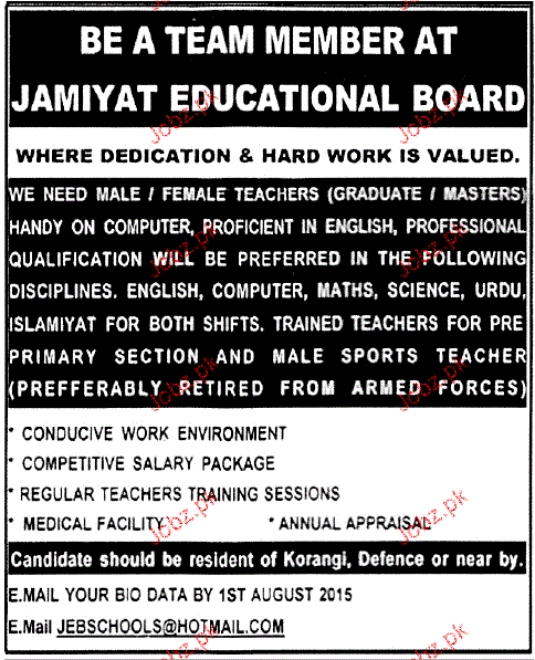 Apply as per details in job advertisement. Login to view further details of how to apply via https://www.jobz.pk online.