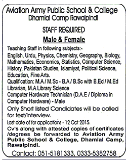 Latest Army Public School APS Teaching Posts Rawalpindi 2025