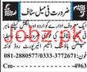 Apply as per details in job advertisement. Login to view further details of how to apply via https://www.jobz.pk online.