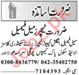Male & Female Teaching Staff Jobs 2021 In Lahore