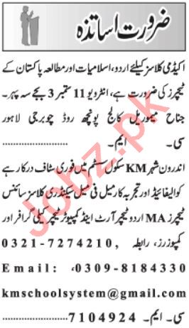 Male & Female Teaching Staff Jobs 2021 In Lahore