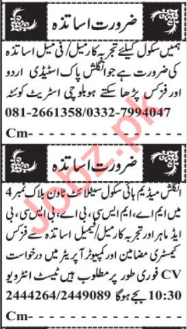 Latest Private School Teaching Posts Quetta 2025