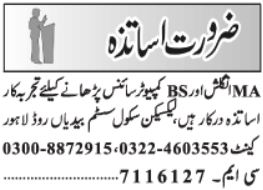Male & Female Teaching Staff Jobs 2022 In Lahore