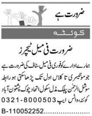 Male & Female Teaching Staff Jobs 2022 In Quetta