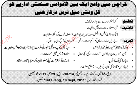 Apply as per details in job advertisement. Login to view further details of how to apply via https://www.jobz.pk online.