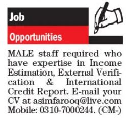 Apply as per details in job advertisement. Login to view further details of how to apply via https://www.jobz.pk online.
