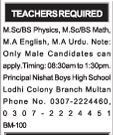 Apply as per details in job advertisement. Login to view further details of how to apply via https://www.jobz.pk online.