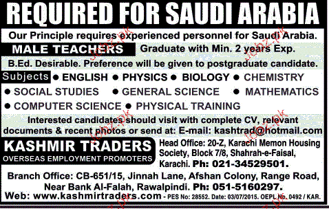 Latest Private Company Teaching Posts Saudi Arabia 2025