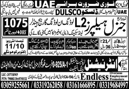 Latest Overseas jobs in International Trade Test & Training Center in Human Resource and others can be applied till 11 October 2023 or as per closing date in newspaper ad. Read complete ad online to know how to apply on latest International Trade Test & Training Center job opportunities. Some jobs in International Trade Test & Training Center may require skills like General Labor and Landscaping & Gardening. Salary varies from 84000. Overtime might be allowed. During job accommodation, transport and medical facility is available.
