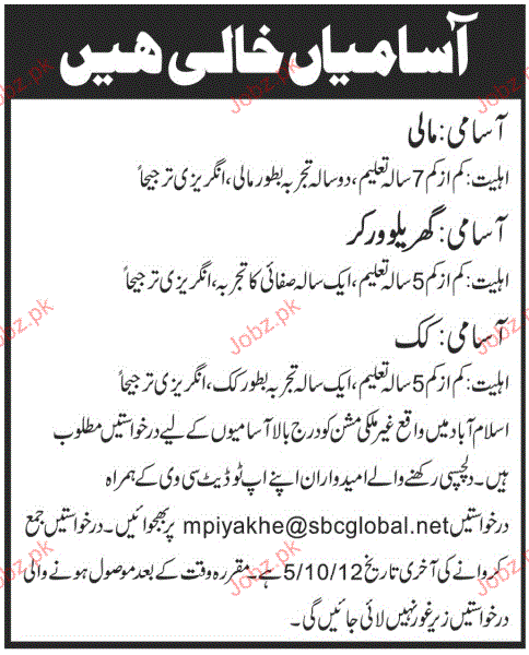 Apply as per details in job advertisement. Login to view further details of how to apply via https://www.jobz.pk online.