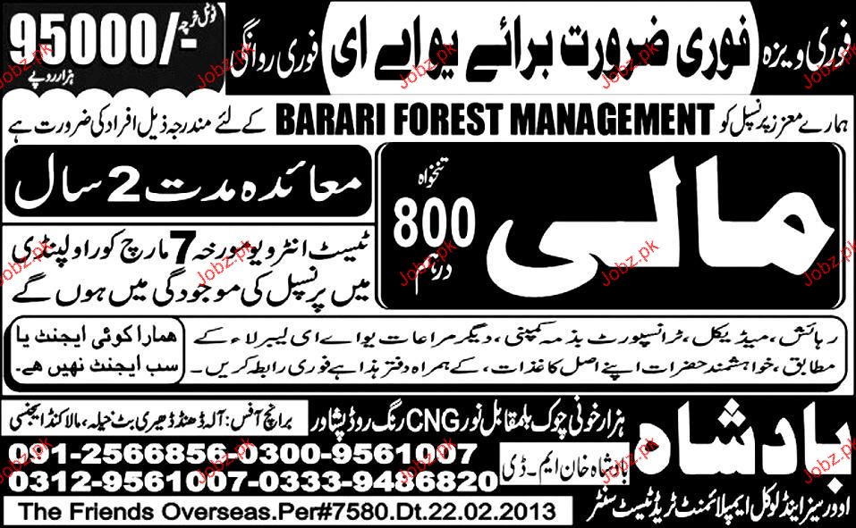 Malis are required in Badshah Overseas & Local Employment Trade Test Center For UAE
