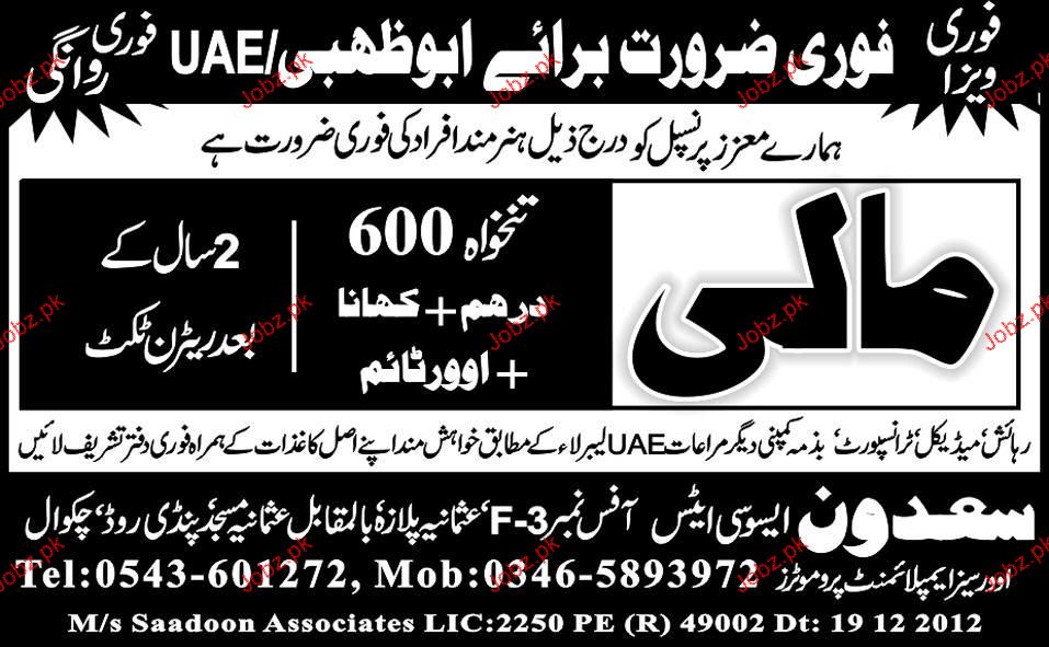 Apply as per details in job advertisement. Login to view further details of how to apply via https://www.jobz.pk online.