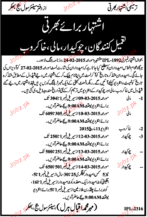 Apply as per details in job advertisement. Login to view further details of how to apply via https://www.jobz.pk online.