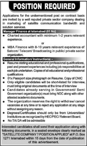 Private Company invites applications for job positions advertised in daily Khabrain dated 4 January 2023 for following vacancies in Islamabad, islamabad Islamabad Pakistan.