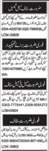 Candidates with Middle, Intermediate, Master, Matric and Bachelor etc. educational background will be preferred.
