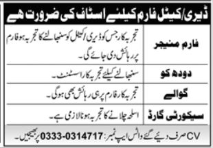 Dairy Farm Karachi, karachi Sindh Pakistan invites applications from eligible candidates for the post of farm anager, milk assistant, assistant, cattleman, security guard and gwala as per advertisement of June 12, 2022 published in daily Jang Newspaper. Matric, Middle and Intermediate etc. educational qualification will be preferred.
