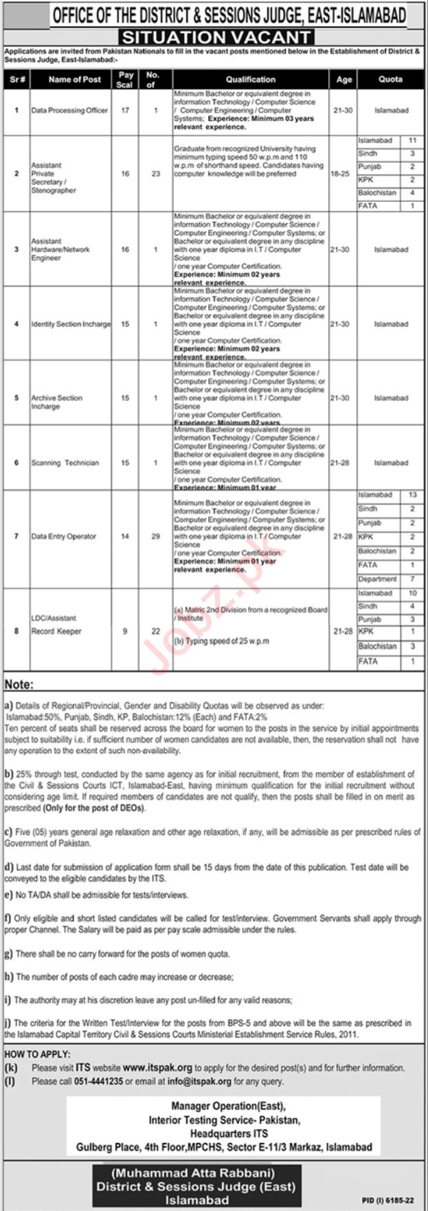Management Jobs In District & Session Judge East Islamabad