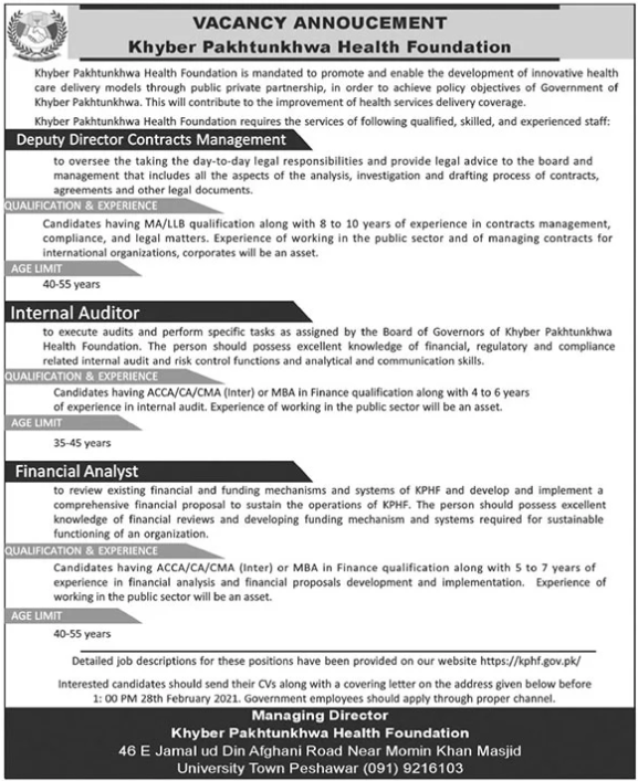 Vacancies in Khyber Pakhtunkhwa Health Foundation Advertisement February 2021