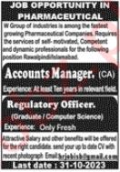 Pharmaceutical Company Rawalpindi, rawalpindi Punjab Pakistan invites applications from eligible candidates for the post of regulatory officer and accounts manager as per advertisement of October 22, 2023 published in daily Jang Newspaper. Educational qualifications required Bachelor and Master etc.
