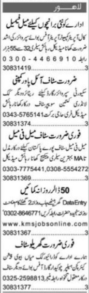 Educational qualifications required Matric, Master, Middle, Intermediate and Bachelor etc.