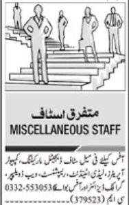 Vacant posts including lady attendant, digital marketing officer, web developer, computer operator and receptionist are announced in Private Company Rawalpindi, rawalpindi Punjab Pakistan as per 29 December 2023 advertisement in daily Jang Newspaper. Persons with Matric, Master, Middle, Intermediate and Bachelor etc. education can apply.