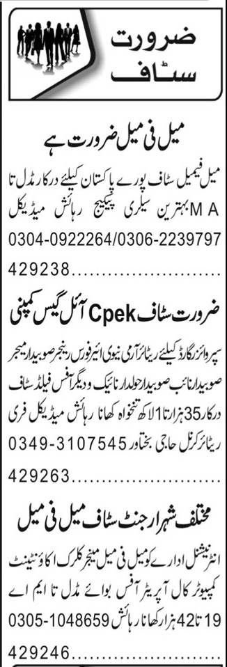 Private jobs advertisement dated about 19 December 2022 in daily Roznama 92 News Newspaper invites application for the vacant post of security guard, clerk, accountant, office staff, computer call operator, management staff, security supervisor and office boy in Lahore, lahore Punjab Pakistan. Candidates with Master, Middle, Bachelor, Matric and Intermediate etc. educational background will be preferred.