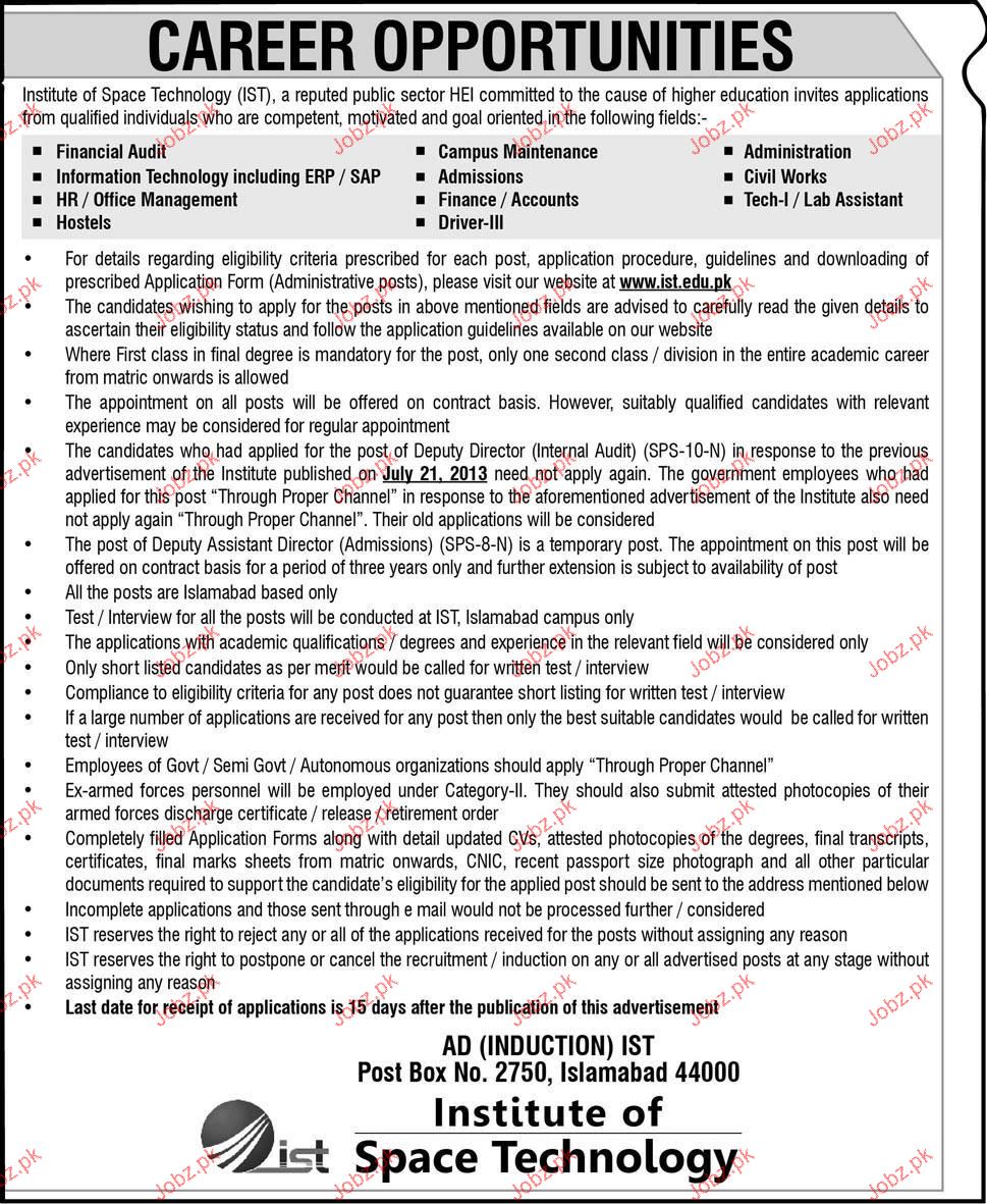 Management Staff Job In Institute Of Space Technology