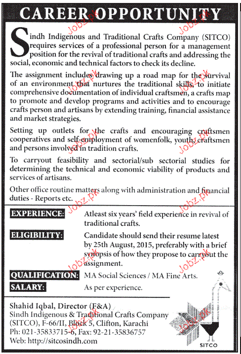 Apply as per details in job advertisement. Login to view further details of how to apply via https://www.jobz.pk online.