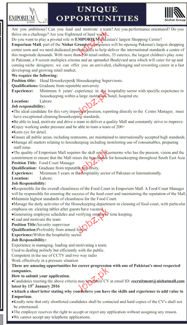 Apply as per details in job advertisement. Login to view further details of how to apply via https://www.jobz.pk online.