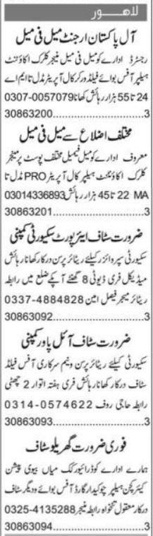 Private Company jobs advertisement dated about 21 October 2023 in daily Express Newspaper invites application for the vacant post of patient care, chef, male staff, kitchen helper, pro, field worker, call operator, computer operator, house servant, female staff, manager, chowkdiar, office boy, office field worker, clerk, public relations officer, driver cook, guard, security supervisor, supervisor and accountant in Lahore, lahore Punjab Pakistan. Middle, Master, Bachelor and Intermediate etc. educational qualification will be preferred.