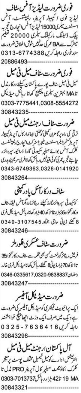 Vacant posts including security guard, call operator, medical officer, office assistant, female staff, pro, office incharge, receptionist, district incharge, driver, office boy, public dealing marketing, customer dealer, office field staff, security supervisor guard, computer operator, public relations officer, male staff, clerk, manager, helper, assistant manager, telephone operator and supervisor are announced in Private Company Faisalabad, faisalabad Punjab Pakistan as per 11 February 2023 advertisement in daily Express Newspaper. Candidates with Master, Matric, Intermediate, Bachelor and Middle etc. educational background will be preferred.