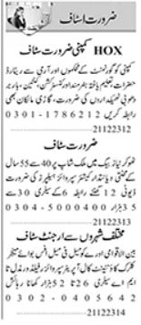 Private Company Karachi, karachi Sindh Pakistan invites applications from eligible candidates for the post of supervisor, field worker, retired army guard, construction contractor, shobi, male staff, accountant, manager, barber, helper, call operator, office boy, cashier, clerk, security guard, canteen contractor, contractor and female staff as per advertisement of December 21, 2023 published in daily Dunya Newspaper. Matric, Middle, Intermediate, Bachelor and Master etc. educational qualification will be preferred.