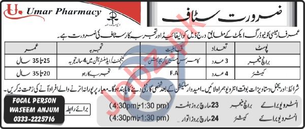Vacancies in Umar Pharmacy Advertisement March 2019