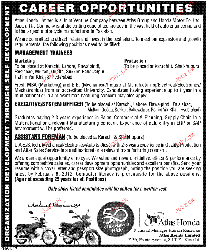 Apply as per details in job advertisement. Login to view further details of how to apply via https://www.jobz.pk online.