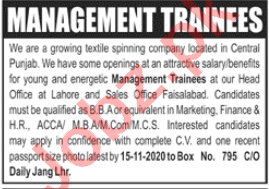 Vacancies in Spinning Mill Advertisement October 2020