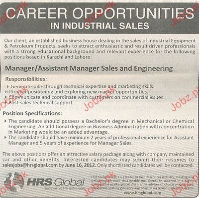 Manager / Assistant Manager Sales & Engineering Wanted