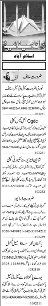 Vacant posts including driver, call operator, subedar, accountant, pro, security guard, havaldar, naik, public relation officer, manager, subedar major, sipahi, ltv driver, office staff, helper, security supervisor and clerk are announced in Private Company Islamabad, rawalpindi Islamabad Pakistan as per 10 March 2023 advertisement in daily Dunya Newspaper. Educational qualifications required Bachelor, Matric, Middle and Intermediate etc.