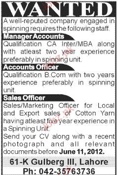 Manager Accounts, Accounts Officer and Sales Officer Wanted