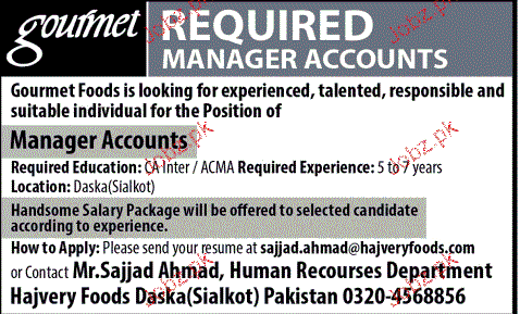 Manager Accounts Job Opportunity