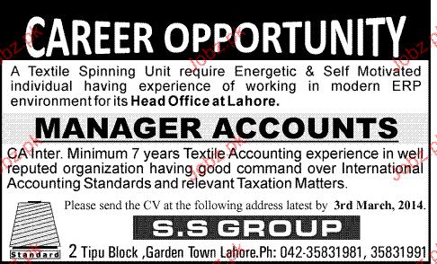 Manager Accounts Job Opportunity