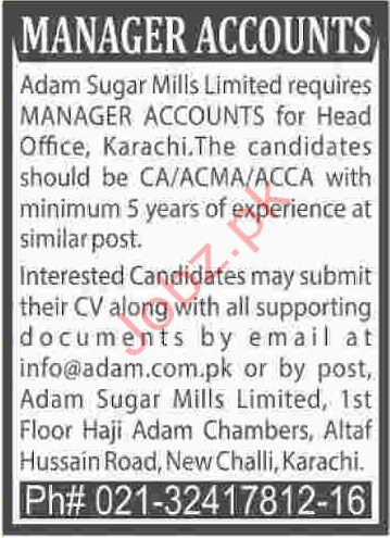 Latest Adam Sugar Mills Limited Accounting Posts Karachi 2025