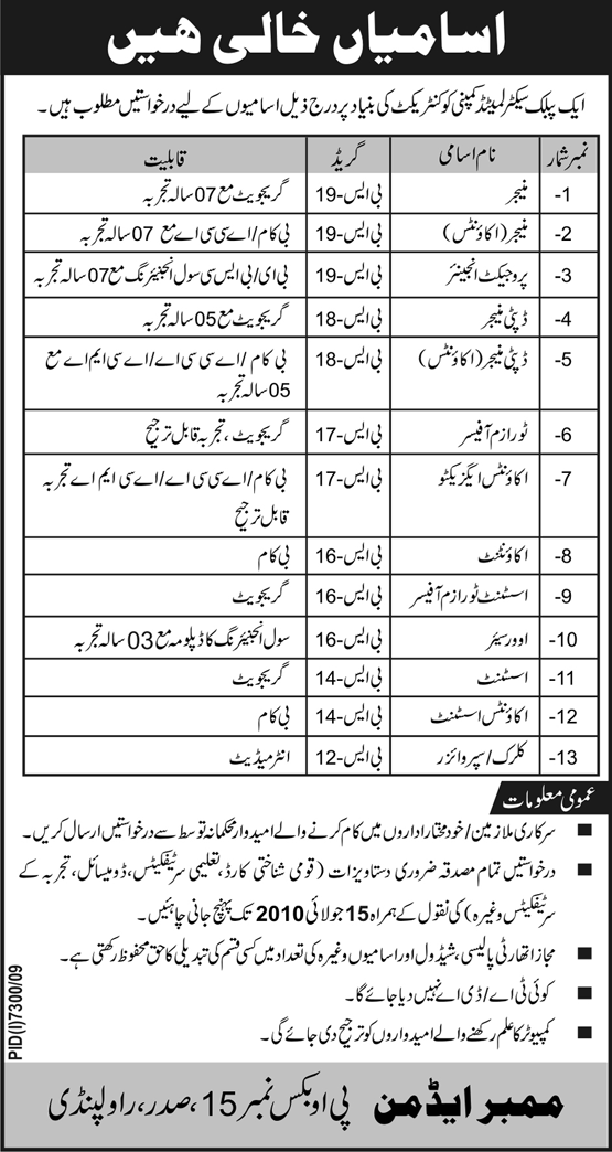 Apply as per details in job advertisement. Login to view further details of how to apply via https://www.jobz.pk online.