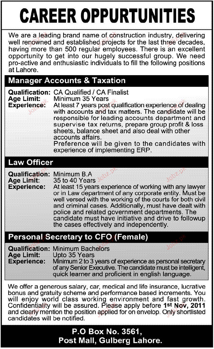 Manager Accounts & Taxation, Law Officer Job Opportunity