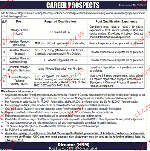 Apply as per details in job advertisement. Login to view further details of how to apply via https://www.jobz.pk online.