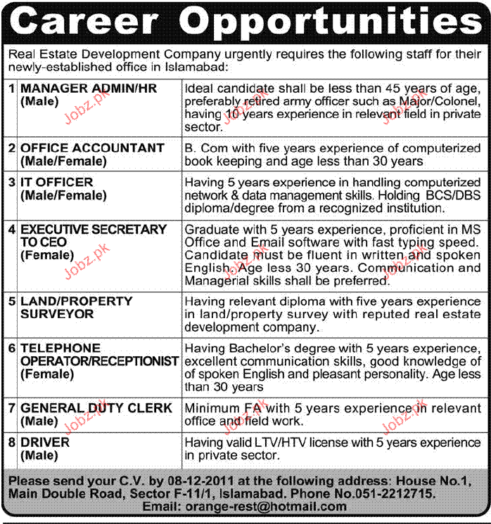 Latest Private Company Real Estate Posts Islamabad 2025