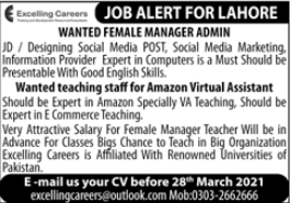 Manager Admin & Teaching Staff Jobs 2021 in Lahore